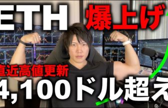 4. 仮想通貨ETHイーサリアムが直近高値の4,100ドル突破!最高値更新も間近!ETHの今後の値動き、BTCや他アルトより注目と資金が集まっている理由を解説します。