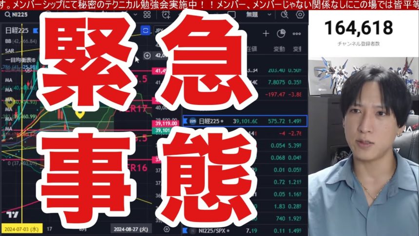 8/3、米雇用統計で日本株粉砕。円高加速で日経平均35,000円割れまで大暴落。追証多発で投げ売り加速。日銀利上げでドル円146円台。米国株、ナスダック、半導体株急も急落。仮想通貨BTCも弱い。
