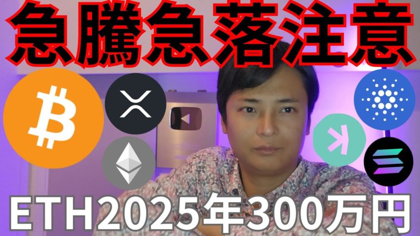ビットコイン急騰急落注意、イーサリアム2025年300万円!?【仮想通貨 暗号資産 暗号通貨 BTC ETH XRP SOL ADA TRX LINK KASPA DOGE 他】