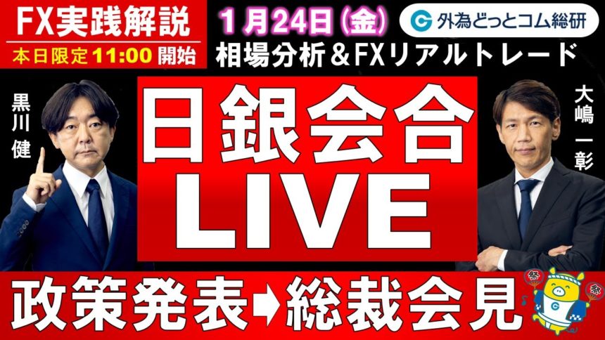 日銀ライブ!FX実践解説、相場分析&リアルトレード、ドル円などの注目材料(2025年1月24日)-会合結果から総裁会見まで一挙放送