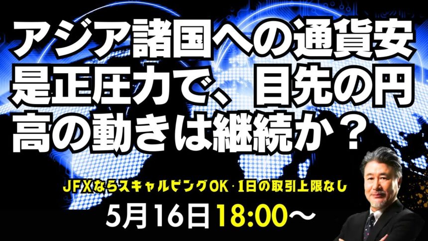 【為替】5/16 アジア職への通貨安是正圧力で、目先の円高の動きは継続か?