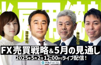 元メガバンクディーラーの戸田裕大氏のほか、外為どっとコム総研から神田調査部長、中村研究員が出演します。