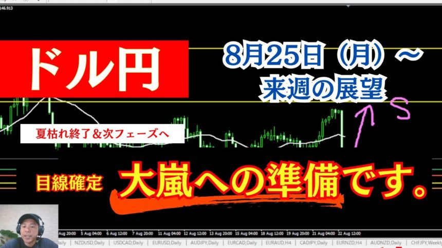 【FXドル円来週の展望】目線確定!嵐の前の静けさかっ⁉ 2025年8月25日(月)~