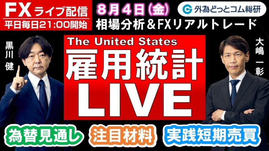 ★8/4米雇用統計はコチラでも配信中、川合美智子氏、今井雅人氏が登壇(米雇用統計特別企画)★