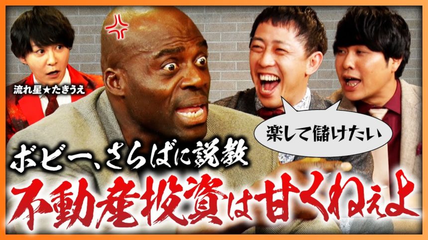 さらば青春の光が経験豊富な大家さんから不動産投資を学んでいく新企画「不動産王への道」。最終回のゲストは、ボビー・オロゴン、流れ星★たきうえの2人。「芸能界の不動産王」とも言うべき2人が、不動産投資のリアル事情を暴露!さらに、「儲け方」しか考えていないさらばに、ボビーの説教が炸裂!?