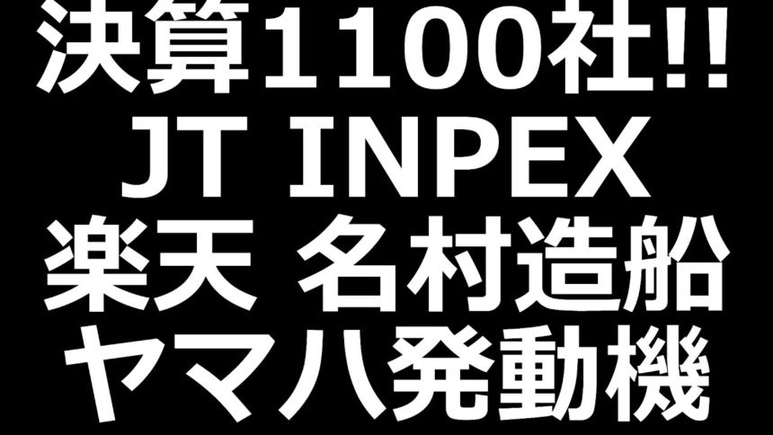 注目株!! JT、INPEX、楽天、ヤマハ発動機、造船系など決算