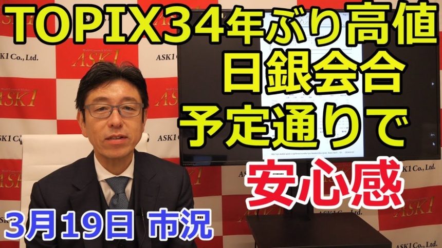 2024年3月19日【TOPIX34年ぶり高値 日銀会合予定通りで安心感】(市況放送【毎日配信】)