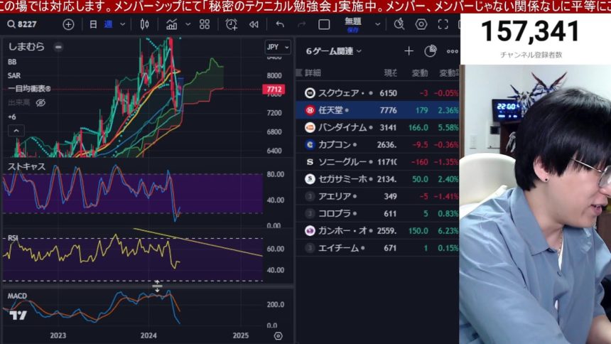 5/12、日本株投げ売り多発!!円安加速で日経平均だけ上値重すぎる。東京エレク次第で状況一変か。ドル円155円台。利下げ期待で米国株、ナスダック、半導体株強い。仮想通貨ビットコインは?
