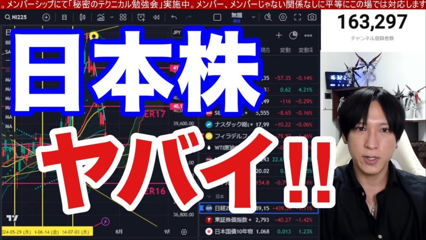 7/24.日本株ヤバい。日銀来週利上げで円高加速→日経平均急落か。半導体株急落止まらん。ドル円154円に下落で海外投資家売り加速か⁉︎日銀会合まで油断できない。米国株、ナスダックも不安定。