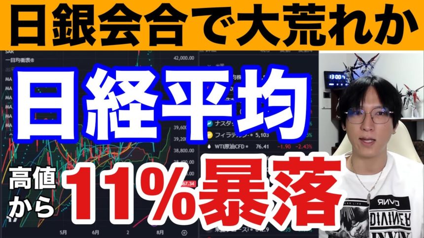 7/27.日本株の投げ売りヤバイ。ドル円急落で日経平均11%大暴落。日銀会合で大荒れか。半導体株の暴落ヤバすぎる。バリュー株、高配当銘柄強い。米国株、ナスダック上昇で日経先物500円高。