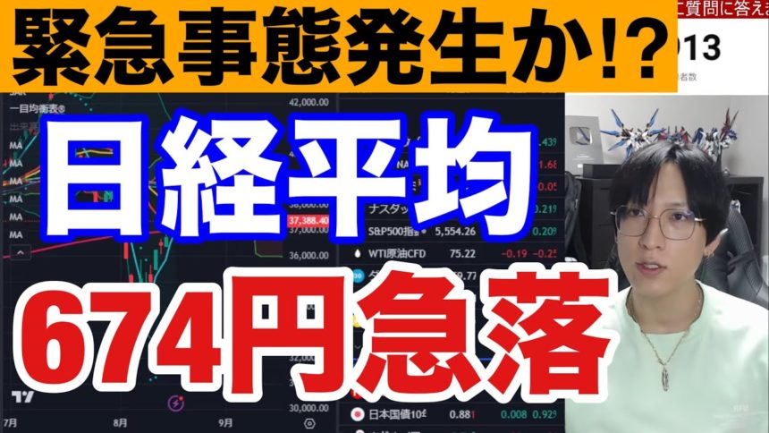 8/19、日本株緊急事態発生か。ドル円急落で日経平均700円下落。追証多発で株暴落→海外投資家大量買いからの売り仕掛?9月配当落ち後の下落警戒。米国株、ナスダック、半導体株も上値重いか。