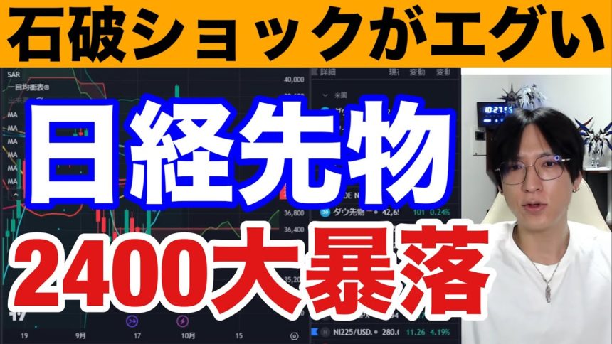 9/28,石破ショックで日経先物暴落だと‼円高加速で日本株急落か。ドル円142円に急落。米国株最高値更新も半導体株下落。中国、欧州株強い。仮想通貨BTC下落。