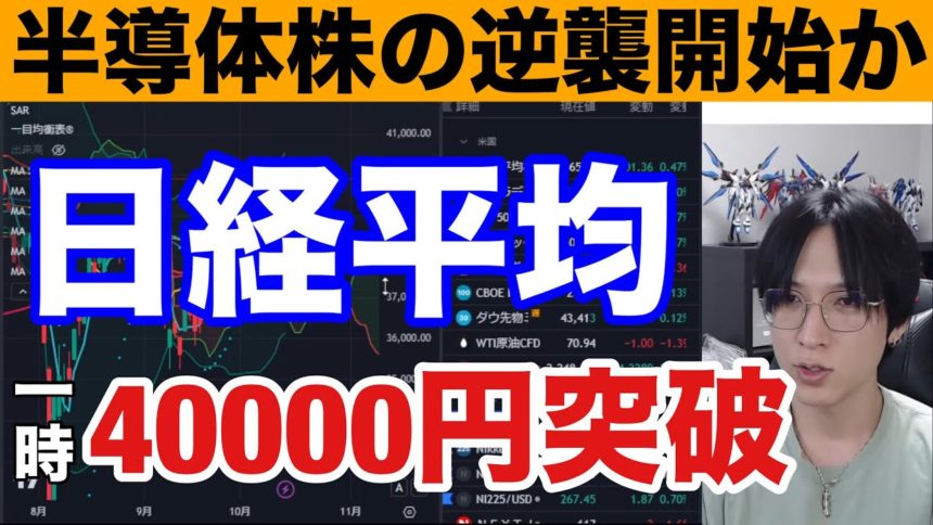 10/15,日本株爆上げ開始か⁉半導体株急騰で日経平均一時4万円回復。ドル円149円推移で海外勢日本株買い来るか。原油急落で資源株大幅安。米国株最高値更新でナスダックも強い。仮想通貨BTC急騰。