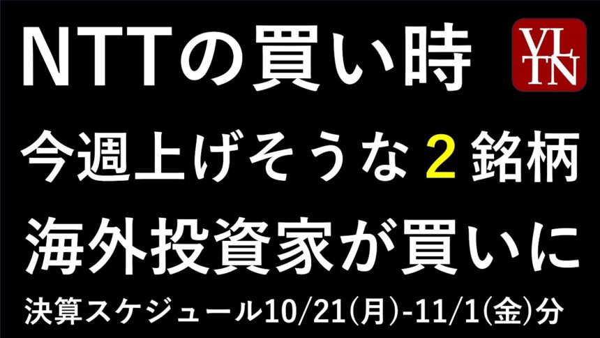 NTT株の買い時の株価と来週上げそうな2銘柄。半導体株と衆院選の見通し。決算スケジュール。~あす上がる株。最新の日本株情報。高配当株の株価やデイトレ情報についてもお話しいたします。