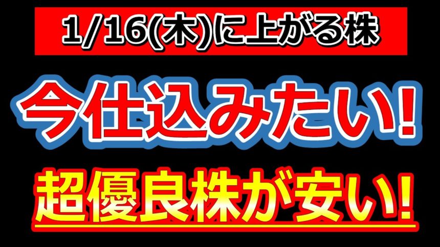 今仕込みたい!超優良株が安い!【1/16(木)に株価が上がる株・明日上がる株・株式投資日本株最新情報】