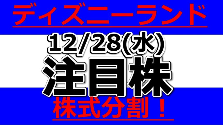 オリエンタルランド(ディズニーランド・シー)が株式分割!【12月28日(水)の注目銘柄まとめ】本日の株式相場振り返りと明日の注目銘柄・注目株・好材料・サプライズ決算を解説、株式投資の参考に