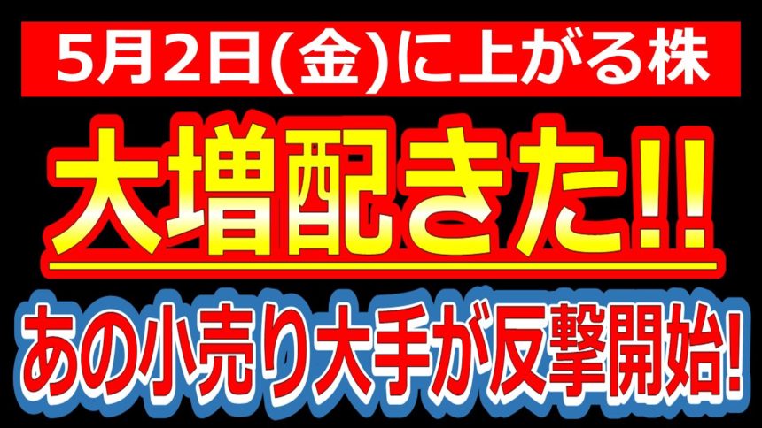 大増配キタ!あの小売り大手が反撃開始!5/2(金)に株価が上がる株・来週上がる株・明日上がる株・株式投資日本株最新情報