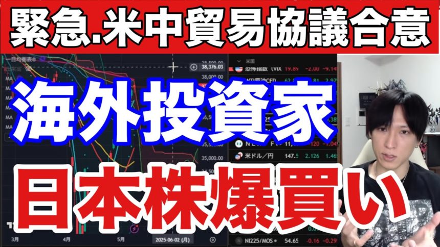 5/12【緊急、海外勢の日本買い過去最大、日本株・債券で8兆円爆買い】半導体株急騰で日経平均続伸。ドル円147円に上昇。米中貿易協議合意で米国株、ナスダック先物急騰。仮想通貨ビットコインも強い。