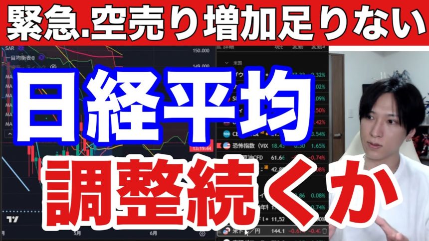 5/20【日経平均調整まだ続く】空売り増加、ドル円下落で海外投資家の爆買い→上昇相場再開来るか。米国債格下げも米国株上昇。エヌビディア決算まで半導体株は軟調か。仮想通貨ビットコインもしっかり。