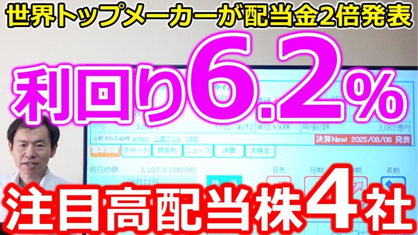 【本気度が違う!】世界トップメーカーが配当金2倍発表 利回り驚異の6.2%へ 注目高配当株4社