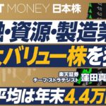 【日本株の投資戦略:三大バリュー株を狙え】今の株価は割高か?/日経平均は年末4.4万円/GPIFに学ぶポートフォリオ戦略/金融の3銘柄/資源エネルギーの3銘柄/製造業の3銘柄/J -REITの4銘柄