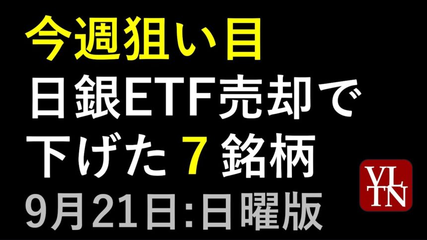 日銀のETF売却発表で下げた7銘柄。決算スケジュール2週間分。9/21日曜版~あす上がる株。最新の日本株情報。高配当株の株価やデイトレ情報も~
