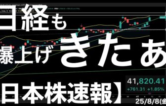 2. 【日本株速報】25/8/8 日経平均も爆上げキタァ!決算と関税と需給で