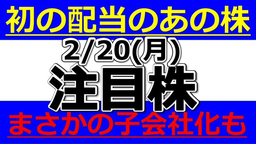 初の配当を発表したあの株!まさかの子会社化発表も!?【2月20日(月)の注目銘柄まとめ】本日の株式相場振り返りと明日の注目銘柄・注目株・好材料・サプライズ決算を解説、株式投資の参考に