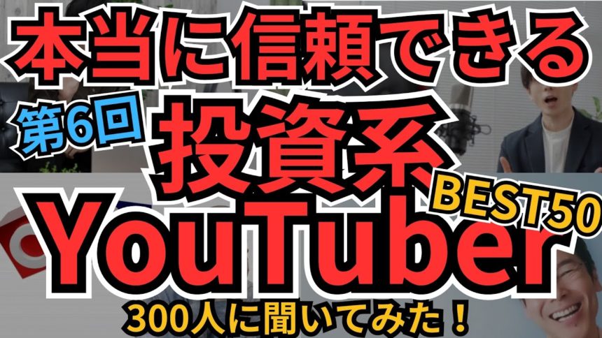 個人投資家300人に「本当に信頼できる投資系YouTuber」を調査した第6回ランキング。21~50位の注目チャンネルからBEST20まで一気に発表し、その理由コメントも紹介。自分に合う情報源が見つかり、怪しい情報を避けつつ投資スキルを伸ばしたい人向けの保存版です。