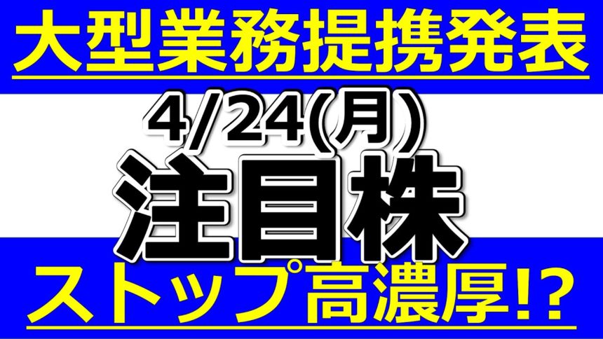 大型業務提携発表!ストップ高濃厚か!?【4月24日(月)の注目株まとめ】