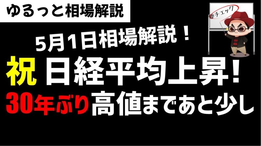 【5月1日のゆるっと相場解説】日経平均株価は直近高値超え!バブル以来の高値水準まであとちょっと!ズボラ株投資