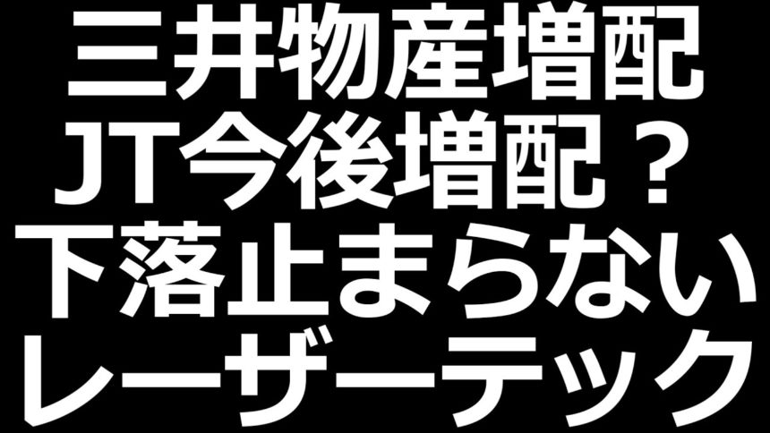 JT今後増配?三井物産増配。下落止まらないレーザーテック、日経レバ空売り多い
