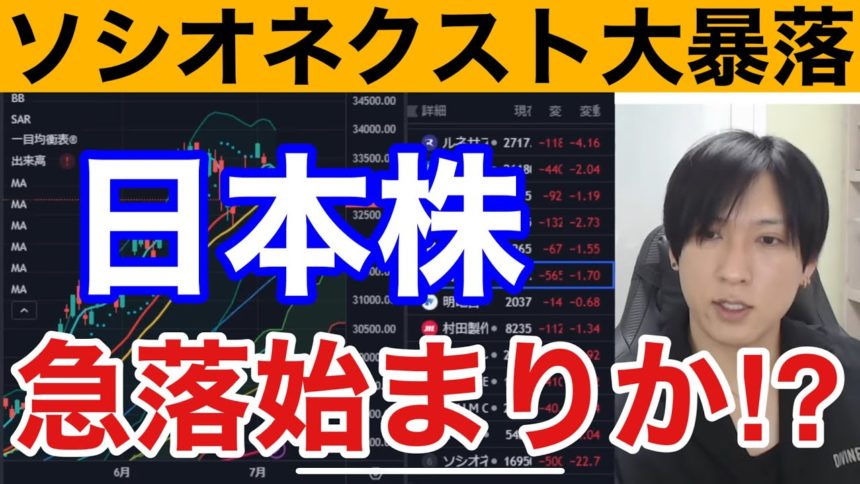 【7/6、日本株急落始まりか⁉ソシオネクスト暴落で半導体株全面安】円高加速でドル円下落→日経平均下落圧力。米国株、ナスダックはFOMC議事要旨無難に通過。