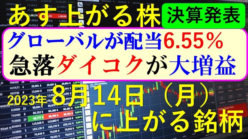 今日の引け後に出た材料で、週明け8/14(月)に期待できる銘柄。株式投資とデイトレ情報。決算スケジュールの時刻と狙いどころ。本日のストップ高、ストップ安。IPOの新規上場銘柄とスケジュール。経済カレンダーも掲載。あすのデイトレ銘柄候補10選。7月の高配当銘柄。8月のIPO新規上場銘柄。半導体銘柄と生成AI銘柄。最新の半導体関連銘柄と生成AI株、商社株。東京エレクトロン、リクルート、メルカリ、楽天の決算速報についてもお話しいたします。~