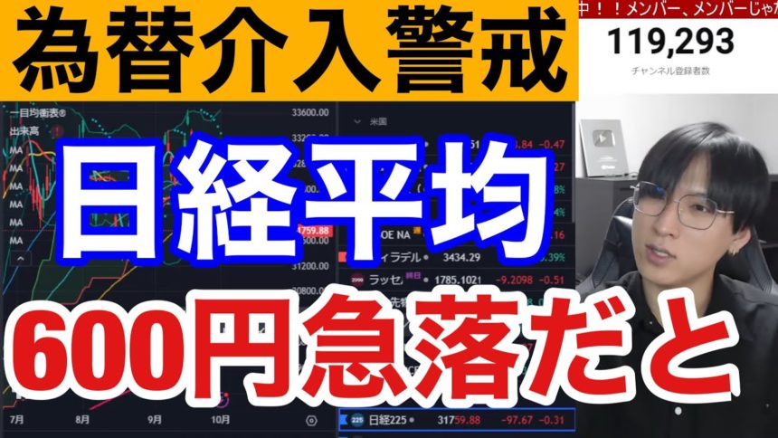 10/2、日経平均が後場600円急落で日本株の投げ売り加速。円安加速でドル円150円間近。為替介入警戒→海外勢の売り仕掛け継続?個人の高値掴み急増で需給悪化。米国株の上昇サインを待て!!
