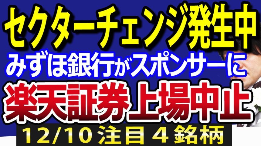 三木谷氏の誤算?みずほが楽天証券に約900億円追加出資!日本株にセクターチェンジ発生中か