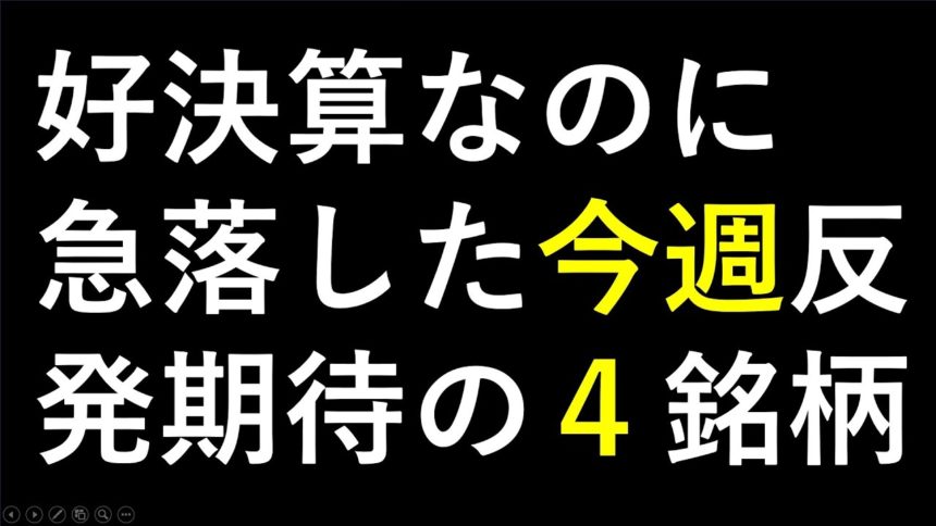 好決算を発表したのに急落した反発期待の4銘柄ついてお話しいたします。最新の日本株での株式投資のお話です。