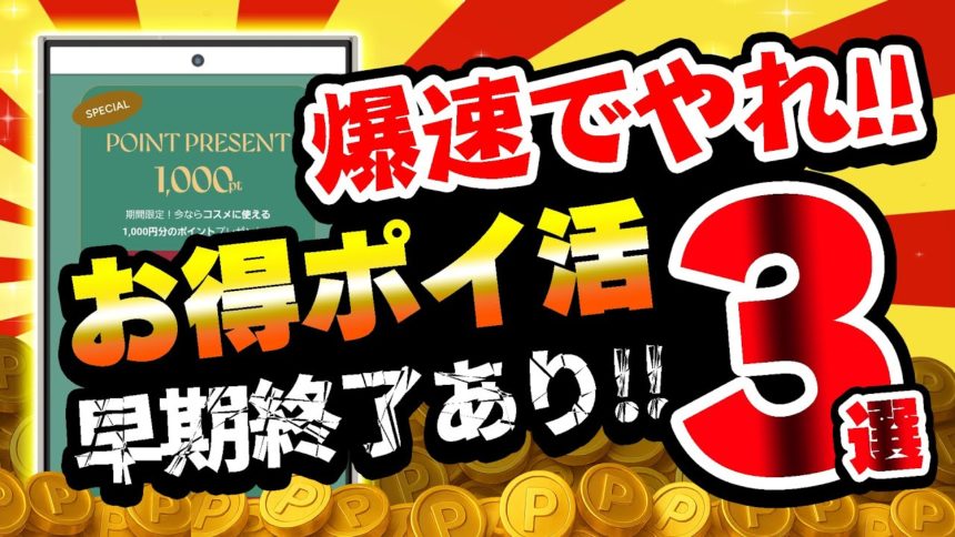 【大急ぎ案件!】速攻で大量ポイントがGETできる!お得ポイ活情報3選【ポイ活】