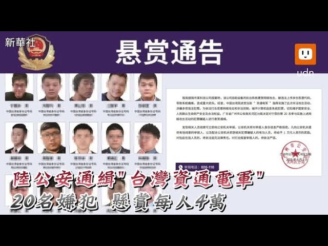 陸公安通緝「台灣資通電軍」20名嫌犯 懸賞每人4萬