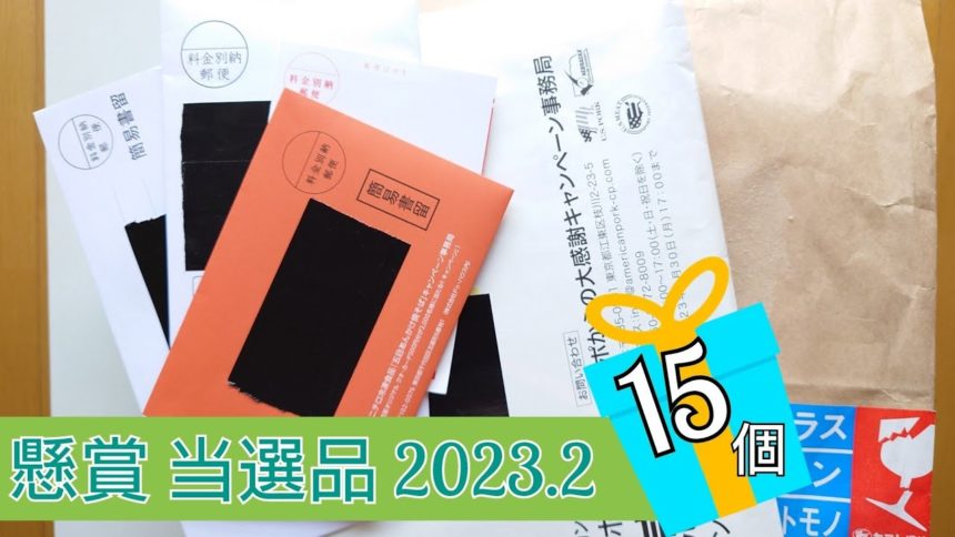 今回は、15個の当選品を紹介しています。